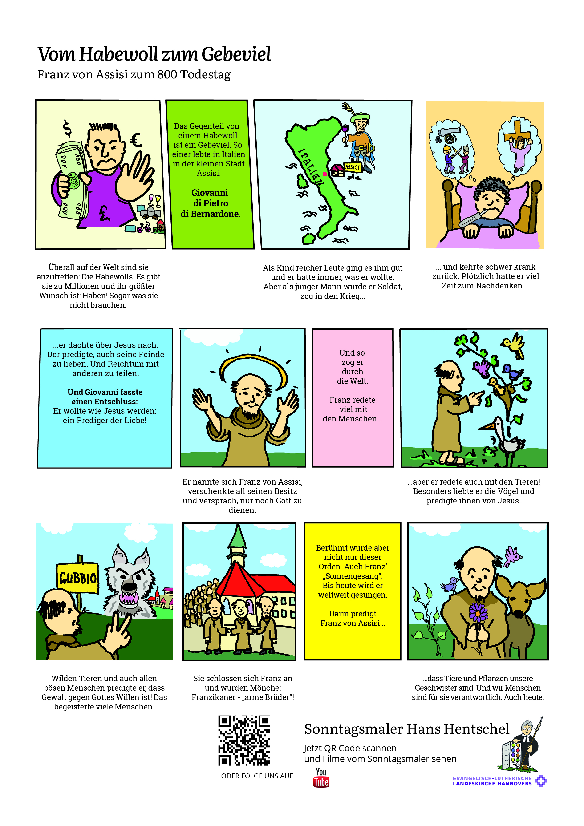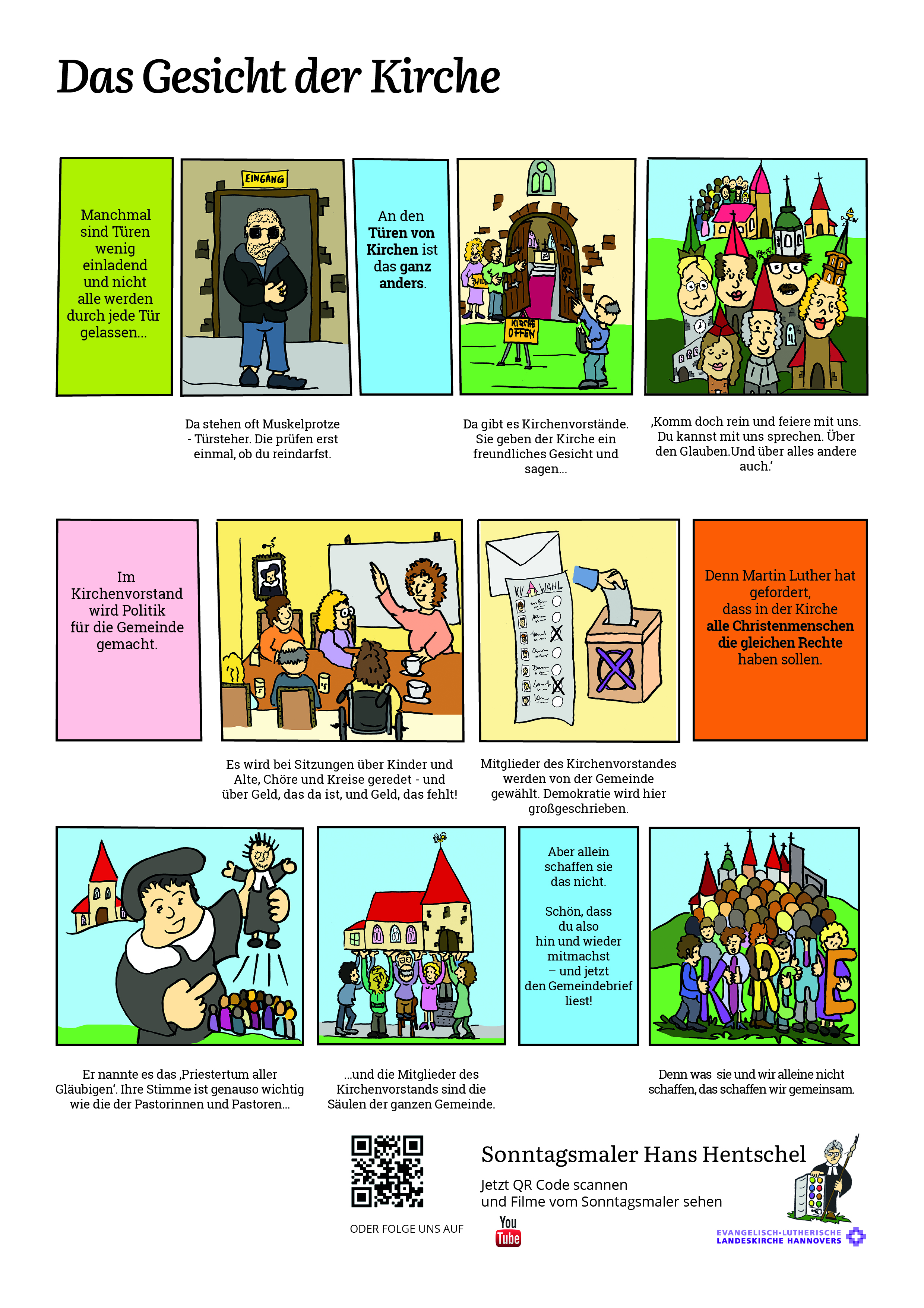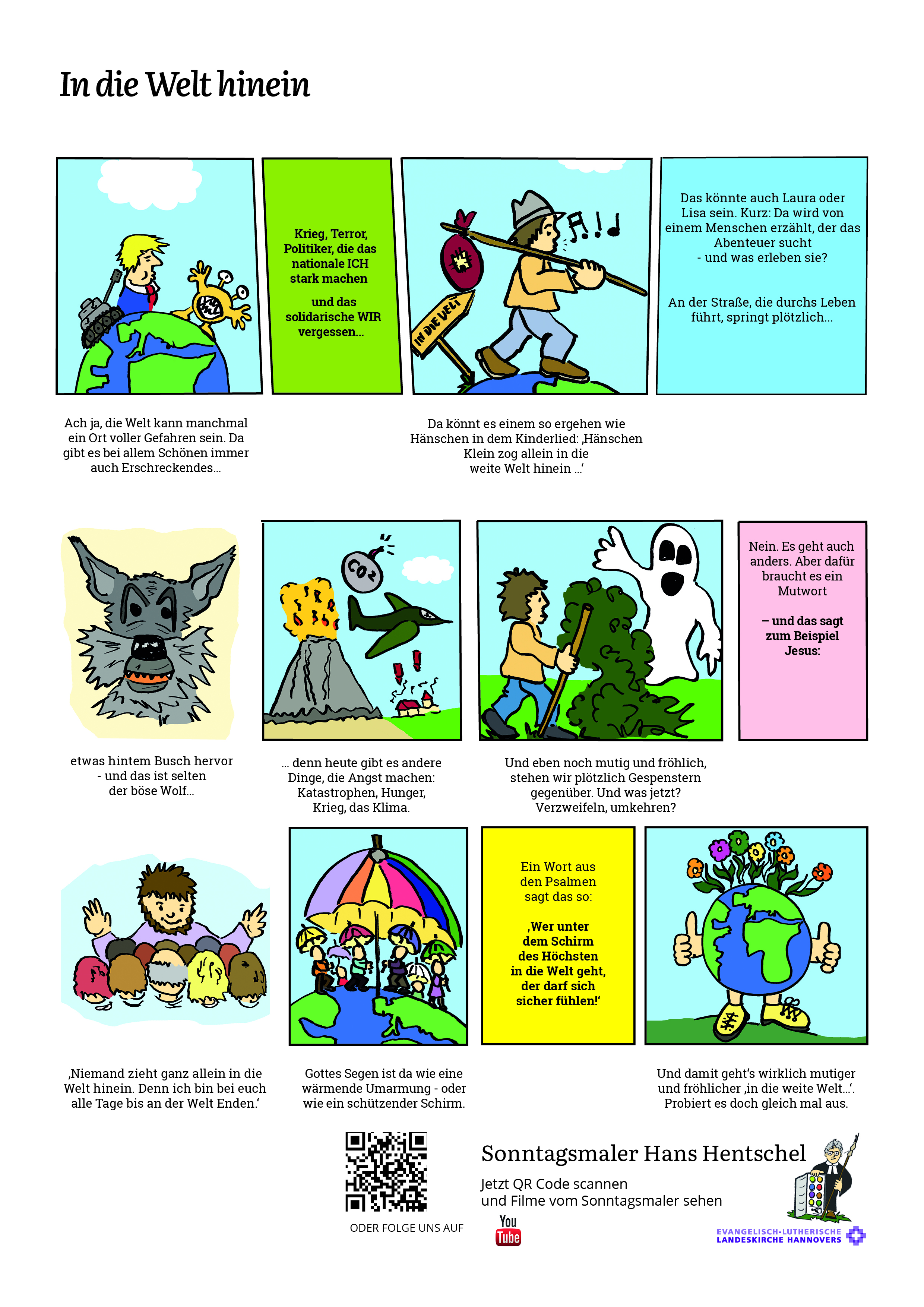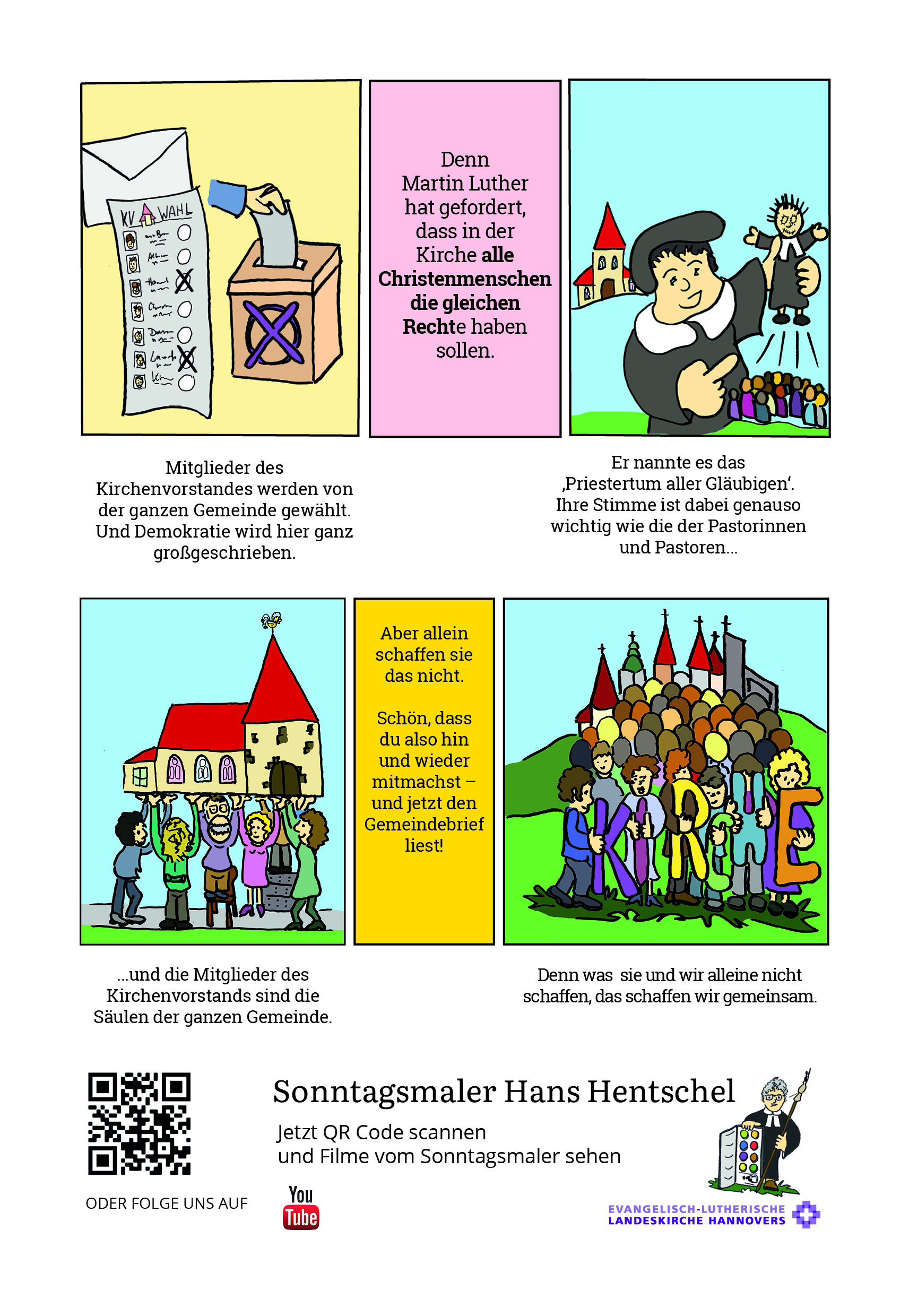 Hier finden Sie Bilderseiten für Ihren Gemeindebrief. Alle Rechte sind frei, Sie können die Comics des Sonntagsmalers in DIN A 4 oder DIN A 5 herunterladen und in Ihren Gemeindebriefen kostenlos abdrucken.